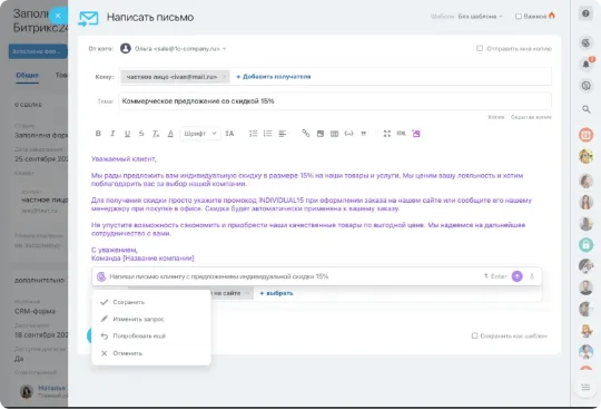 Битрикс24 CoPilot доступен бесплатно для базовых задач, обучения и тренировки навыков работы с AI.